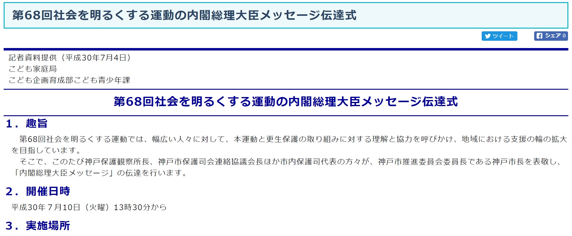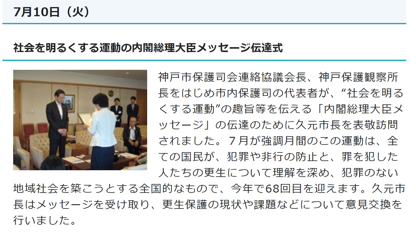 平成30年7月10日 神戸市 社会を明るくする運動の内閣総理大臣メッセージ伝達式