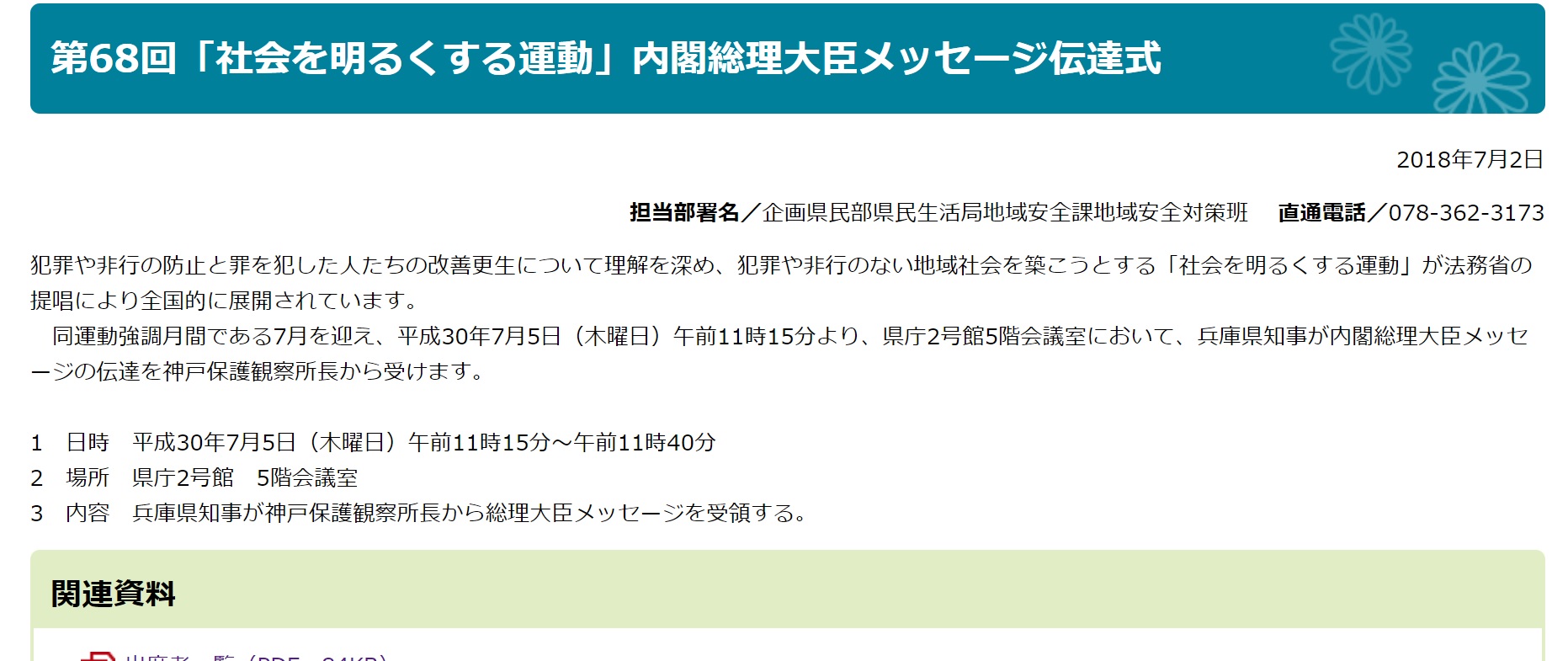 平成30年7月5日 兵庫県 社会を明るくする運動の内閣総理大臣メッセージ伝達式