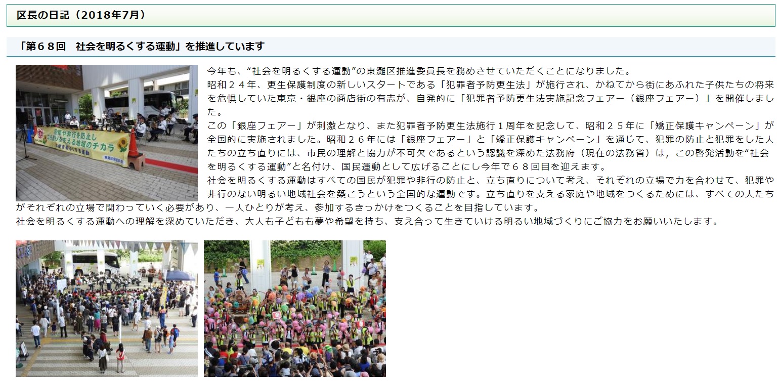 第68回社会を明るくする運動「社会を明るくする集い」区長の日記
