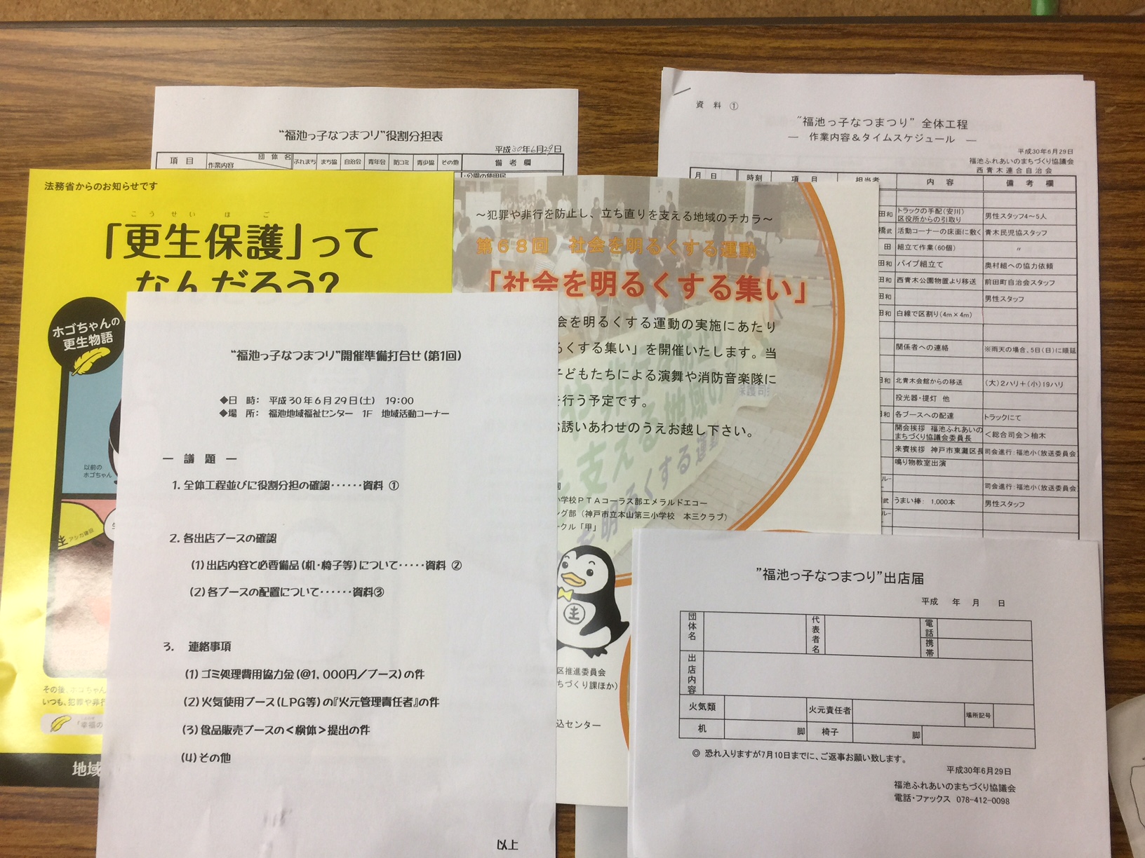 6月29日19時~20時福池地域福祉センターにて なつまつり準備打合せ会で、社明のちらしと「更生保護」ってなんだろうを30人配布し、広報活動を桑山・和田保護司で行いました。