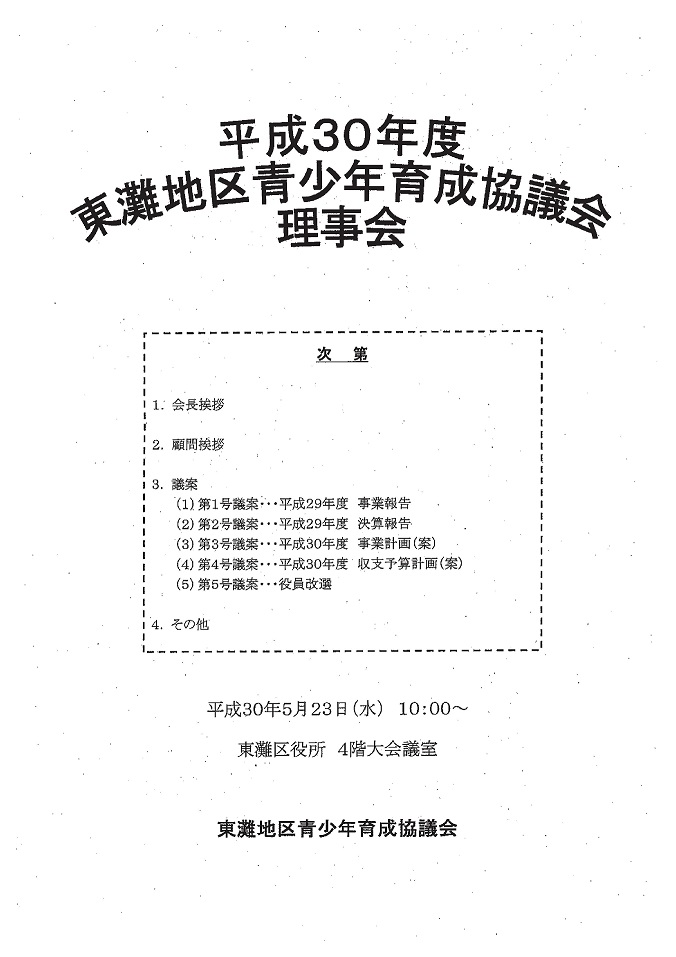 平成30年5月23日 東灘地区青少年育成協議会理事会